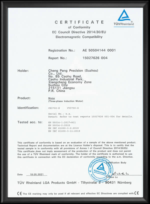 公司以“CPG”為注冊商標,并通過ISO9001、ISO14001、ISO45001、CE以及CCC等相關認證。減速電機特性依據國際電工委員會IEC-34及國標CNS-10919標準制造,另設東莞服務網點:東莞市晟邦機械有限公司。
